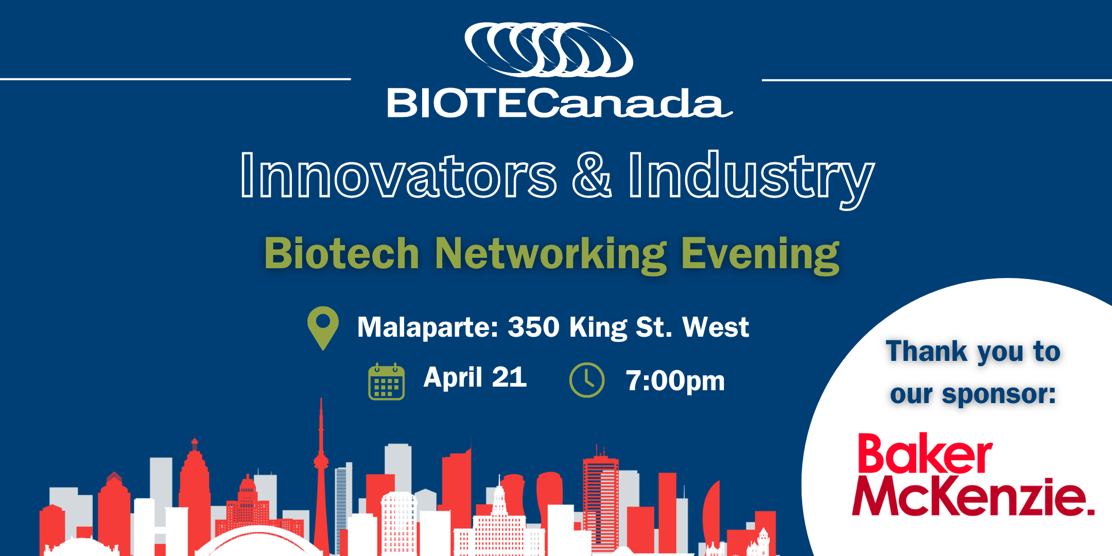 Join BIOTECanada and Baker McKenzie for the Innovators & Industry: Biotech Networking Evening, a cocktail reception hosted alongside the Bloom Burton & Co. Healthcare Investor Conference (BBHIC).